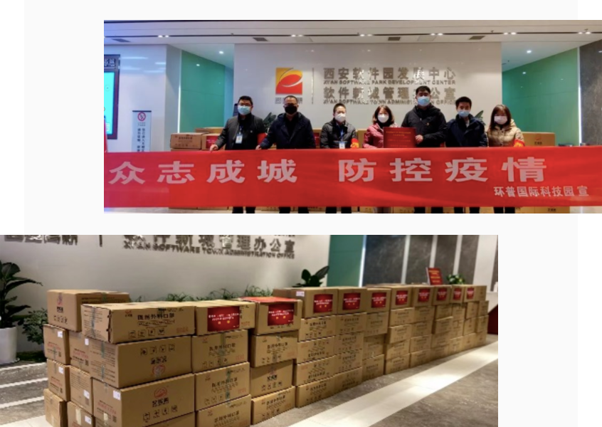 此外,普洛斯還積極踐行社會責任,向園區及企業捐贈防疫物資。在得知西安絲路軟件城防護物資短缺、采購受限、快遞運輸渠道受阻的情況后,普洛斯西安環普國際科技園第一時間籌備價值10萬元的防疫物資,及時支援絲路軟件城的疫情防控工作。