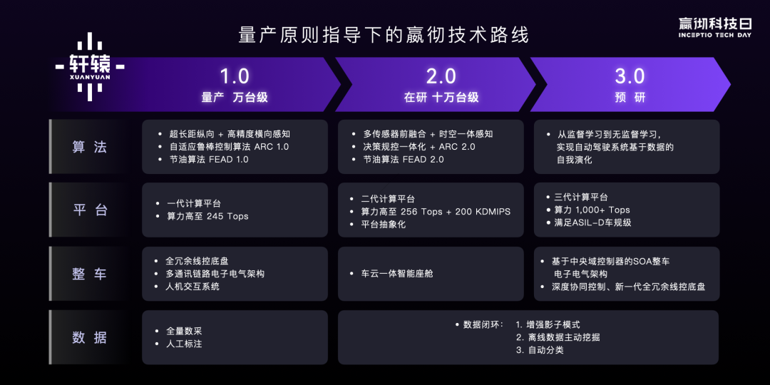 在此次科技日上,嬴徹科技還面向行業分享了基于量產原則指導下的三階段技術路線。