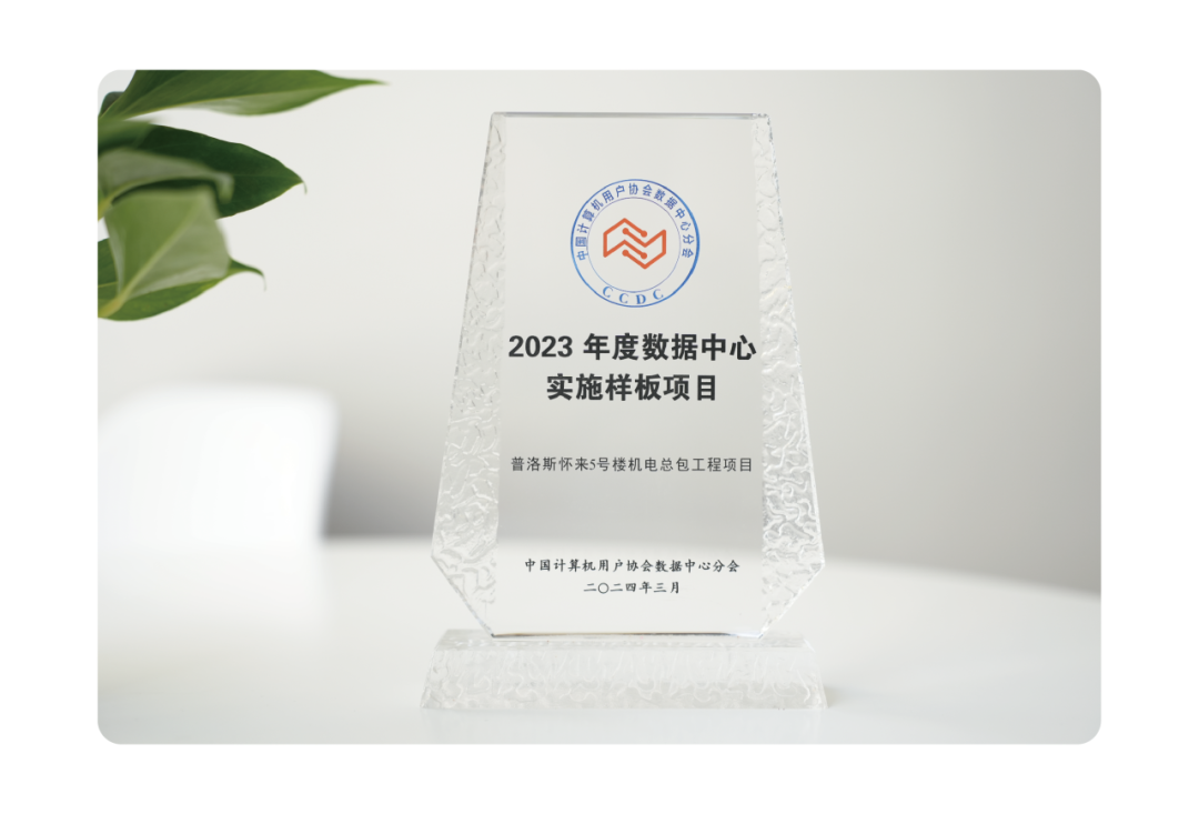 普洛斯懷來數據中心5號樓榮獲由中國計算機用戶協會數據中心分會(CCDC)認證的“2023年度數據中心實施樣板項目”