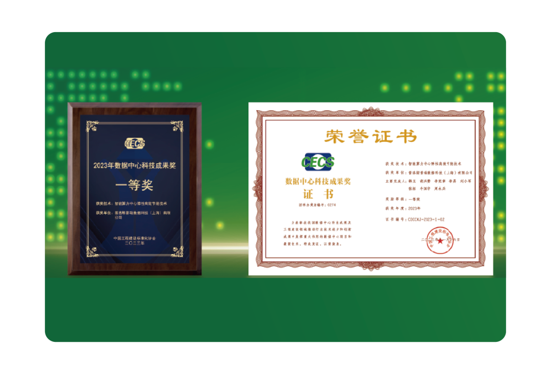 懷來園區捧得由中國工程建設標準化協會(CECS)頒發的“2023年數據中心科技成果獎一等獎”