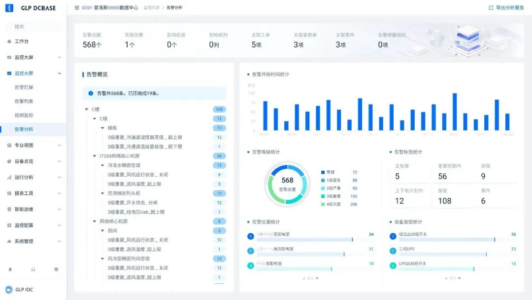 基于AI算法模型以及監控數據智能關聯分析,GLP DCBASE 3.0還提供了內嵌閾值告警、故障告警等功能,保障液冷系統運行維護的安全可靠,有效降低液冷系統運營風險。